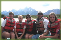 In the afternoon we took a floating trip down the Snake River. It's not white water rafting, and it's not floating down the river in an inner tube. It's kind of in between. We were in a LARGE inner tube raft that holds 12 people and a guide. The guide used two very long oars to guide the raft down the river which dropped 400 feet over the course of the 10 mile trip. During the course of the trip saw a bald eagle, a moose very close up, and other assorted wild life. There was just enough "white water" to make it fun and get a few of us a little wet.
